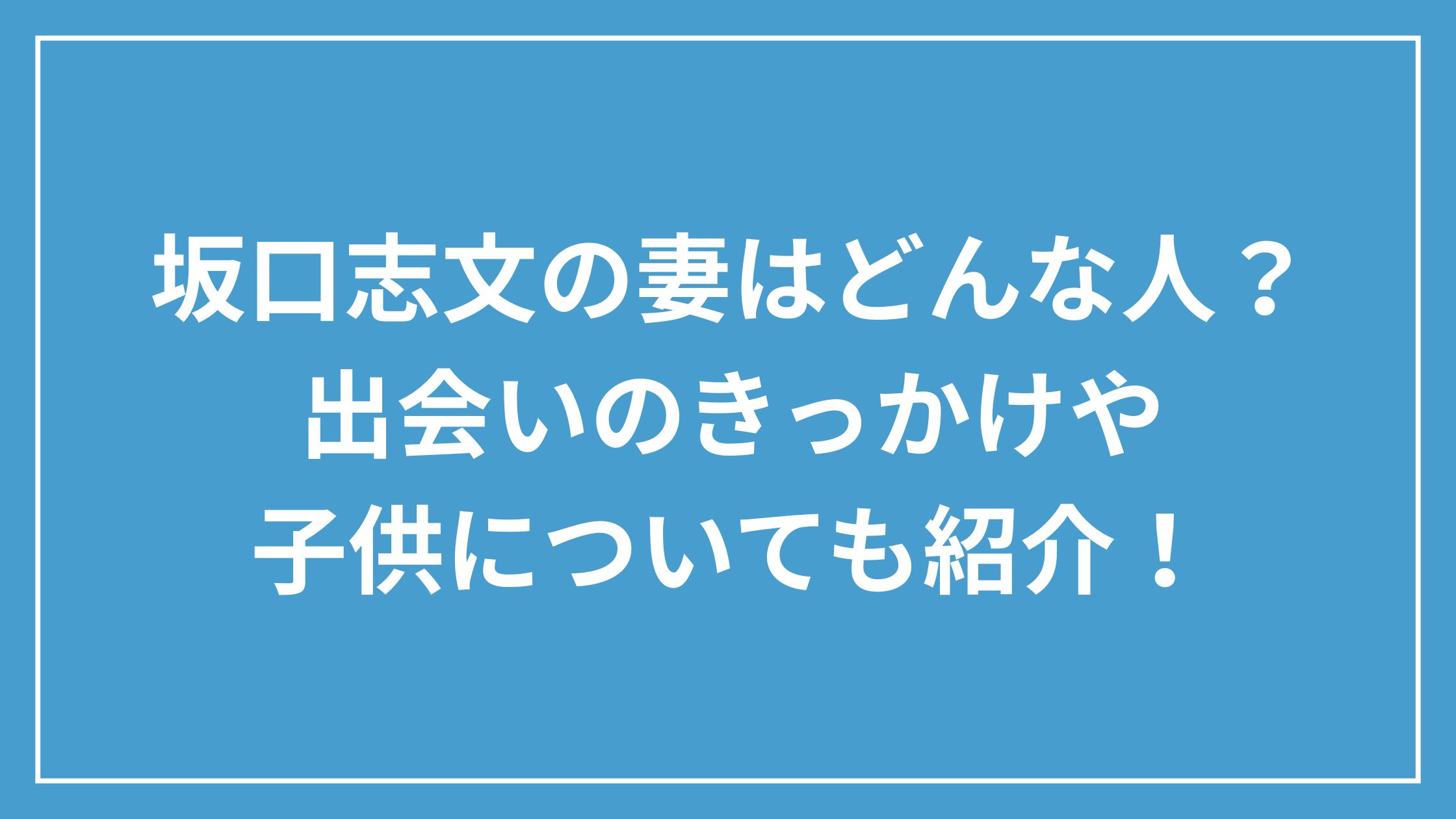 坂口志文の妻と子供に関する質問(Q&A)